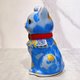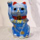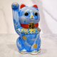 Japanese Kiyomizu-yaki Lucky Cat, Floral Crystal Pattern, Blue, Billion Ryo (a unit of weight, approximately 600,000 taels)