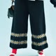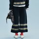 - Retro Floral Blue Pure Wool Chunky Knit Trousers - imakokoni