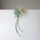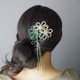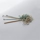 - A kanzashi hairpin with a design that loosely bundles decorative knot flowers of three types, each with a different form, in two colors. Czech glass beads dangle as if dripping from the petals. The remaining knotting threads can be worn hanging straight down or tilted to sway. The way you wear it expands the possibilities for enjoyment.