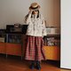- Convertible Maxi Skirt / Fabric Composition Red Plaid Woolen Tweed / 100% Wool