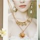 The soft oceanic hues and golden radiance perfectly adorn the neckline, enhancing the wearer's charm. These pieces can be effortlessly layered with other brand necklaces of varying lengths to create diverse styles.