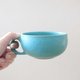 - This soup cup features a rustic texture and a vibrant turquoise blue hue. Its generous size is perfect for holding hearty, ingredient-filled soups. We recommend pairing blue tableware with dishes like cream soups or minestrone, especially those with white, yellow, or red elements.