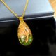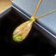 - A teardrop pendant blossoms with a golden rose, rooted in green jasper soil that symbolizes unconditional love and gratitude. Labradorite deepens emotional connections, akin to a soulmate crystal, while green jasper harmonizes the body, breath, and earthly support, alleviating stress and anxiety. The pendant rests near the collarbone, with an adjustable length, and comes with an exquisite pouch and gift box...