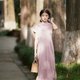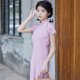 - Pink dark pattern imitation silk petal sleeve girl cheongsam new Chinese style Mid-Autumn Festival Spring Festival improved one-piece dress