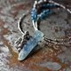 Materials: Icicle kyanite, Indian silver, blue-green agate, herkimer diamond, glass, silver, Karen silver, wire
