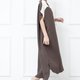 - Shirt Collar Shoulder Patchwork Off-White Short-Sleeved Dress / Coffee Brown Breathable and comfortable, suitable for spring and summer.