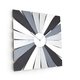 The iconic starburst wall clock is entirely handcrafted in Europe. The 20 wood pieces that make up the quadratic Sun form are hand-painted with 5 different shades of acrylic silver.