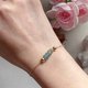 This jade bracelet features a tranquil blue jade as its main body, accented by three vibrant green jade stones that serve as visual focal points. The deep blue is serene, while the green is lively, creating a naturally harmonious color contrast. The jade possesses a fine texture and a soft, lustrous sheen, appearing elegant and timeless when worn on the wrist.