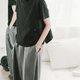 - + If you've never tried wide-leg trousers before, we invite you to experience this pair. + The length is designed to be flattering even for those under 160cm. + The soft, wrinkle-resistant fabric is a significant plus. + A lightweight material perfect for autumn. + Features a fully elasticated waistband with a drawstring.