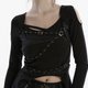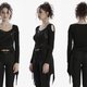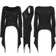 - A dark punk rock long-sleeved top. Crafted from stretchy knit fabric. Features adjustable straps on the chest and waist for a customizable fit. A daring off-the-shoulder design and an edgy, asymmetrical hem add a touch of avant-garde style.