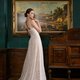 The entire gown is adorned with lace and sequins that shimmer like a galaxy. The bodice features elegant, wave-like ruching. This piece consists of two layers, an outer and inner layer, allowing you to wear the pure lace gown on its own or paired with the nude lining.