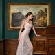 - The entire gown is adorned with lace and sequins that shimmer like a galaxy. This piece consists of two layers, an outer and inner layer, allowing you to wear the pure lace gown on its own or paired with the nude lining.