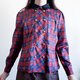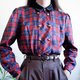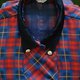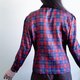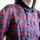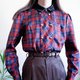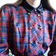 Vintage plaid double-breasted blouse with puff sleeve , Classic plaid shirt blouse