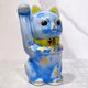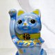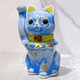 Japanese Kiyomizu-yaki Lucky Cat, Floral Crystal Glaze, Blue, Ten Million Ryo