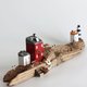 Made with driftwood, screws and nails (rust-finished), white wood (European spruce, Norway spruce, etc.), stain, paint, etc. A damaged look is achieved by sanding. I hope you can feel the "roar of the ocean, the cries of seagulls, and the sound of the wind."