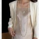 The long chain design can be worn as a single loop or layered with other necklaces, showcasing an elegant yet effortless light luxury texture.