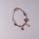An asymmetrical amethyst floral bracelet, embracing nature's imperfections, adorned with a teardrop-shaped prehnite symbolizing #the little pearls shed this year, and a touch of ๐ช magical charm to banish worries.