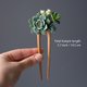 An intricate wooden hairpin with realistic polymer clay succulents: Echeveria Chihuahuensis, Crassula Ovata, Sedum Major, Crassula Tom Thumb.