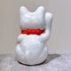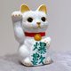 Japanese Kiyomizu-yaki Lucky Cat, Floral Crystallization, White, "Exploding Number" Design, Extra Small