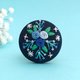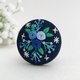 Using three shades of blue thread on navy fabric, it has become a vibrant bouquet.