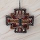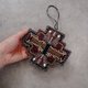 This ornament features a unique cross shape and can be used as a decorative accent throughout the year. Perfect for Christmas, of course—but its elegant design makes it suitable for year-round display. Crafted with luxurious materials including satin fabric, vintage beads, seed beads, sequins, and cotton cord, it offers a rich and elegant design.