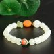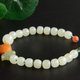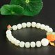This is the only one, the wrist size is 14. If you need to increase the wrist size, you can add more knots between the Hetian jade beads. It is connected in series with 6mm×7mm Hetian jade green and white jade old-style beads. The jade is as warm as condensed fat, transparent and pure, and the light flocs are like cloud shadows passing by. The central Hetian white jade bead is as bright as snow, the Huanglong jade lotus card is elegant, the green jade ingot hides wealth, and the 18K gold auspicious cloud is the finishing touch. It is hand-woven in the ancient way, and the Nanhong tail buckle locks the fortune. It seems to blend the clear rhyme of mountains and rivers with the fireworks of the world on the wrist. It is simple and noble, and it is a subtle balance between poetry and fireworks.