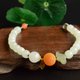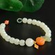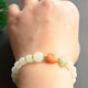 The 18K gold auspicious cloud tag is delicate and exquisite, and the 18K gold flower tray is wrapped around the jade beads. The brilliance of the metal and the warmth of the jade are balanced, showing nobility without being flashy. The tail chain is gathered with small round southern red beads, and a little vermilion breaks the green and moist main tone, just like a seal on an ink painting. When worn, the blue-white jade beads sway lightly with the wrist, and the luster is like celadon washed by rain. The metal accessories occasionally reflect a ray of golden light, like the thin sun leaking through the gaps in the clouds. It does not steal the show, but can quietly set off the wearer's calmness - it is the elegance of pouring tea with lowered eyebrows at the tea table, and it is also the calmness when raising your hand to write in the workplace. The whole is like a plain paper with three parts of quietness and seven parts of warmth. There is wind and moon on the wrist, and the world is hidden in the palm.