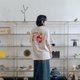 Crafted with newly developed fabric and a refined silhouette, this piece features a substantial, structured material. Beyond its relaxed fit, a distinctive high-low hem with side slits ensures that the loose cut doesn't compromise your proportions. Inspired by vintage Japanese children's safety signs, it's finished with a retro two-tone print.