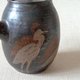 This pouring vessel features an elegant crane, depicted in quiet repose against a deep black glaze.