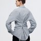 When conceptualizing this shirt, we envisioned numerous ways it would be worn. We aimed for a look that is casual yet refined, ensuring it remains crisp and polished in every setting. To overcome the tendency of pure cotton shirts to be flimsy and prone to creasing at the edges, we selected this finely woven, subtly stretchy checked fabric. The distinct arrangement of different yarns creates a gentle textural feel, while also maintaining a smooth and clean surface at all times. Two thoughtfully placed buttons on the back pleat allow for subtle waist cinching and a flattering lengthening of the silhouette, offering more styling versatility and the freedom to switch up your look effortlessly.