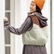 A quilted, cropped vest crafted from corduroy, blending warmth and style.