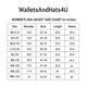Use a dry soft cloth for cleaning. Avoid exposure to direct sunlight and moisture. Store in a breathable garment bag to preserve the leather’s natural texture.