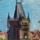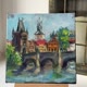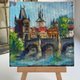 - Prague painting. Miniature cityscape art. Original oil painting. Canvas panel, size 10 x 10 cm. (4x4 inch.) Securely packed for protection. Comes with tracking.