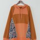 A hooded sweatshirt crafted with mixed materials for a unique silhouette. Featuring decorative ethnic-inspired trim and a vintage feel, it's perfect for casual wear, effortlessly expressing your personal style.