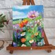 A small oil painting with a flower meadow is painted on hardboard canvas measuring 20/15 cm. The painting depicts a landscape with wildflowers and a bee. A bright original painting with wildflowers will decorate your interior and can also become an unforgettable gift for your loved ones. The author of the picture, the artist is Marina Lesina.