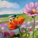 Wildflower Oil Painting Flower Meadow Small Art Bee Artwork Landscape Painting