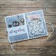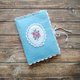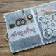 Made of felt with hand-embroidered cross stitch and crocheted lace.