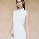 - Viola Sleeveless Embroidered Tweed Qipao w Feather East meets West design