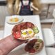 It is 100% handmade. The plate features eggs and bacon + tomato and cucumber.