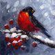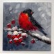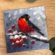A charming winter mini painting featuring a bright bullfinch among snow-covered berries. This artwork captures the magic of a snowy landscape and adds a cozy touch to any space.