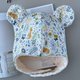 Fasteners: Japanese (this baby hat features a two-position snap design)