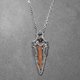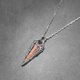 Tiny orange-red inclusions within the crystal, resembling the crimson sky of dusk under outdoor natural light. Unlike previously used crystals coated with iron oxide, this piece features a small phantom at the tip. Additionally, a space is reserved for a crystal-within-a-crystal growing from the side, maximizing the raw stone's charm. Paired with reddish-brown cat's eye staurolite, the cat's eye effect becomes more pronounced under a bright, focused light source.