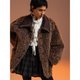 - This season's reversible shearling-lined jacket is crafted from eco-friendly PU leather, featuring a distressed, mottled brown texture and a matte finish that evokes a unique sense of nostalgia. Paired with gradient plush fabric in a matching color palette, it highlights a vintage, autumnal aesthetic. The fluid silhouette and meticulous stitching showcase a refined retro feel in every detail.