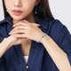 In the fleeting moments where blue light meets silver shadow, your serene elegance quietly blossoms. Interlocking cubic-cut blue gemstones and smooth silver accents create a design language that is both fresh and graceful. The adjustable chain ensures a comfortable fit for various wrist sizes, with quality evident in every detail.
