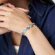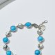 - In the fleeting moments where blue light meets silver shadow, your serene elegance quietly blossoms. Interlocking cubic-cut blue gemstones and smooth silver accents create a design language that is both fresh and graceful. The adjustable chain ensures a comfortable fit for various wrist sizes, with quality evident in every detail.