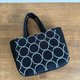 This handmade bag is made from Mina Perhonen's popular tambourine fabric (navy and light blue).