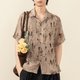 - [Hidden Flower] Woodland Retro Botanical Floral All-Over Print Accordion Pleat Short-Sleeve Shirt