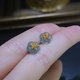 - Youqianhua|Dreamlike ice gel glowing blue plum blossom|A-grade jadeite s925 sterling silver plated with 18k gold simple flower stamen earrings, with certificate Stone size: 9×2mm (choose one)