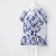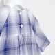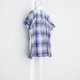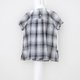 - / Raglan Short Sleeve Top / Front and rear dissimilar material splicing / Crew neck back button design / pleated wrapping fabric / wavy lotus leaf hem / Selected Japanese thick and thin line plaid fabric surface / Eye-catching but not easy to create a personal style