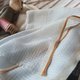This versatile 100% lambswool long scarf features a gradient light blue color, enriched by an overall and subtle mini check texture decorated by gold thread woven border. It is light weight, as soft, delicate and silky as cashmere. The hand-embroidered design depicts falling petals, subtly merge with the mini check and gradient color background. making it elegant, refined, and noble. It is also easy to carry, and suitable for all seasons.